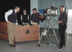 Setting Up For Auction. Left To Right Our MC, Greg Combs, Keith Cartright, President Elect, Scott Wright, Coordinator, Ed Crittenden, Webmaster On Camera.